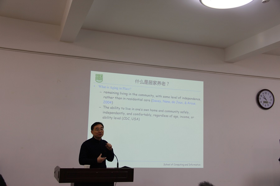 报告厅做了题为“面向居家养老的智慧健康照护”的学术报告。报告由财神捕鱼