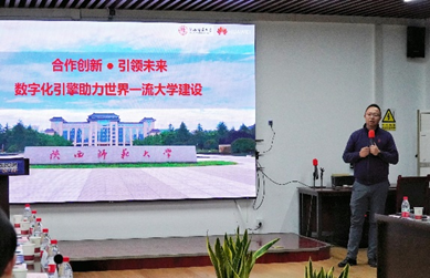 交流研讨环节,华为陕西人才发展总监谷羽新和华为陕西代表处政企教育行业技术总监尹文凯分别作了华为ICT财神捕鱼