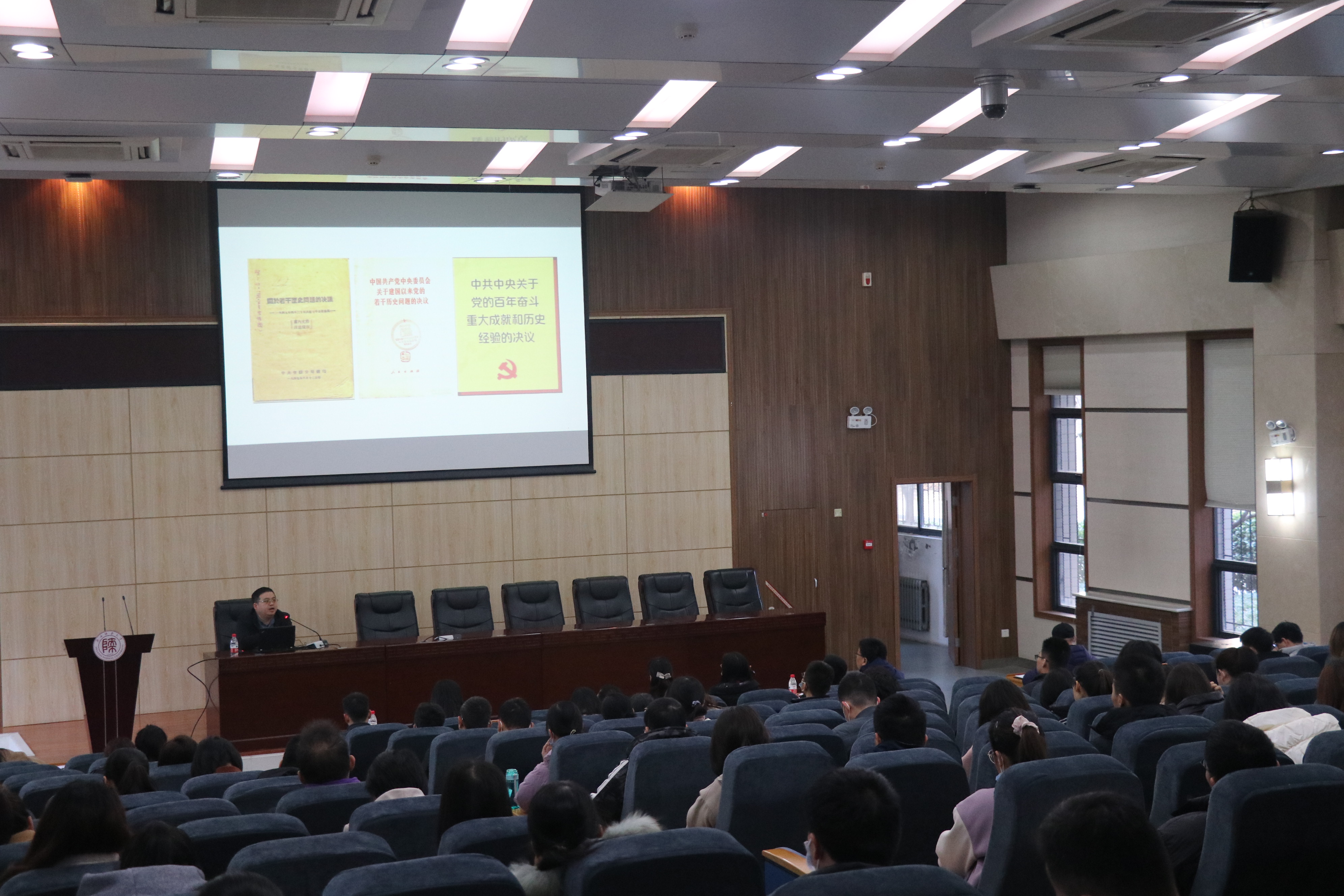 在文澜楼B段一层报告厅召开了党委理论学习中心组学习(扩大)会议,邀请到了学校学习贯彻党的十九届六中全会精神教授宣讲团成员,马克思主义财神捕鱼