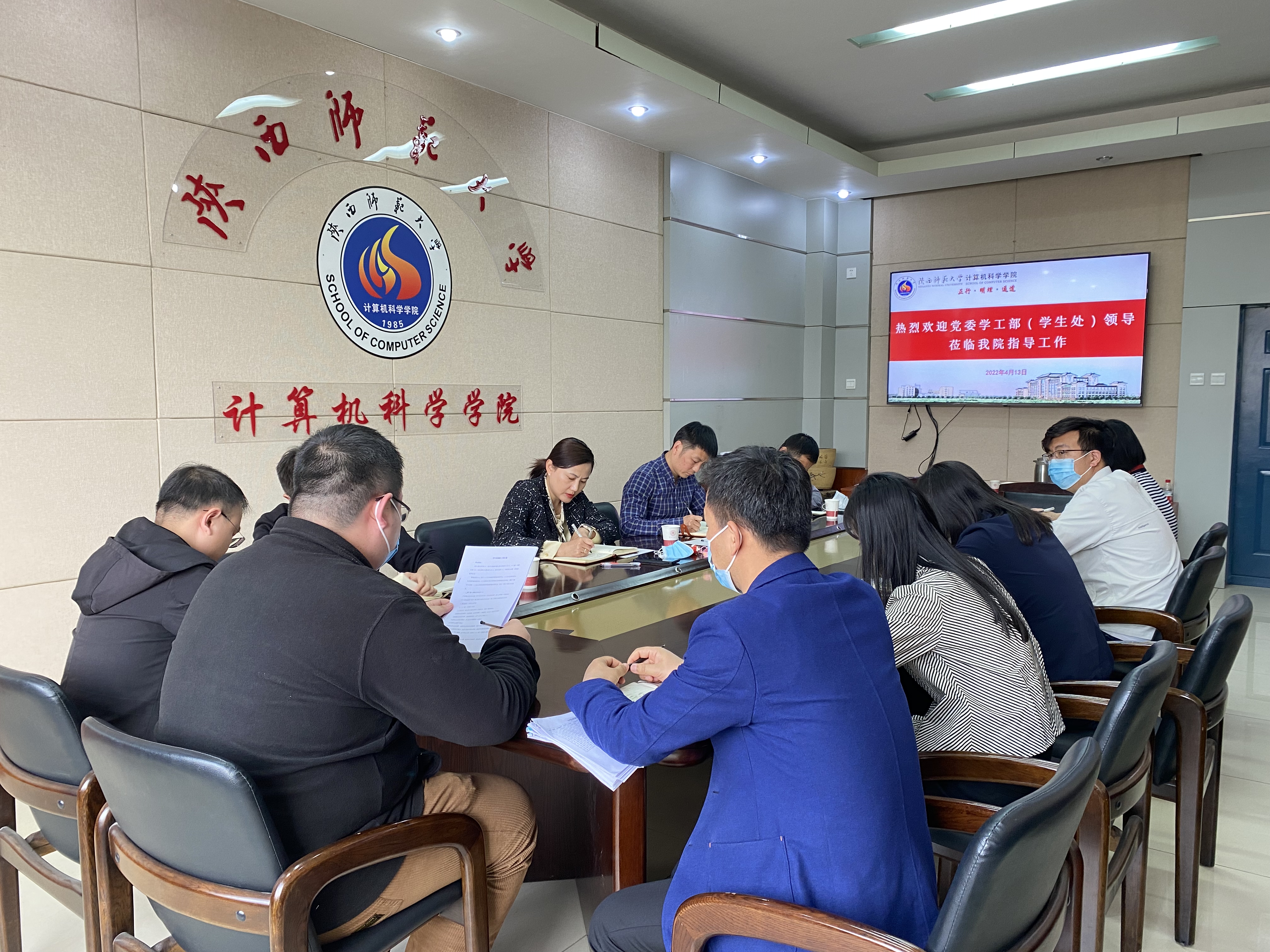 4月13日下午,财神捕鱼党委学工部(武装部、学生处)部(处)长蒋毓新、综合办公室科长时浩翔、学生资助管理中心副主任魏云一行到财神捕鱼