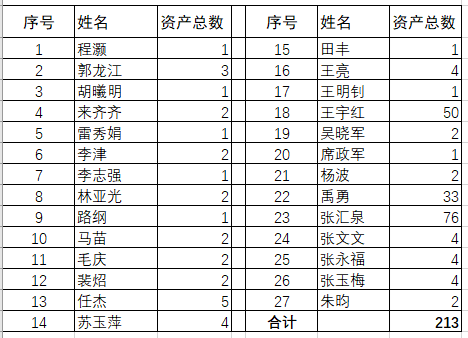 盘点资产总数共计213台件,涉及个人资产盘点工作的老师共27位。