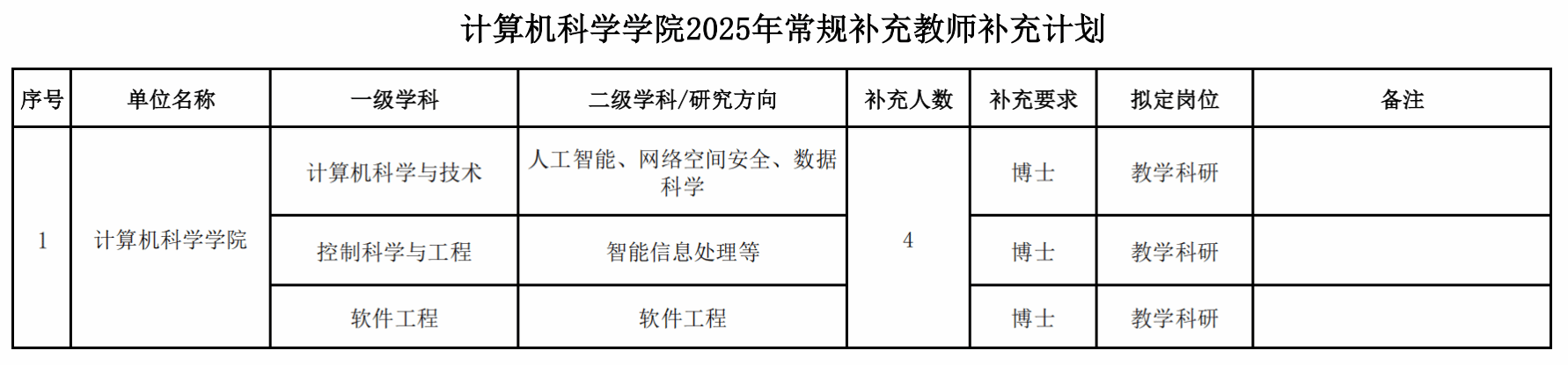 人才队伍建设,就教学科研人员补充工作做如下安排: