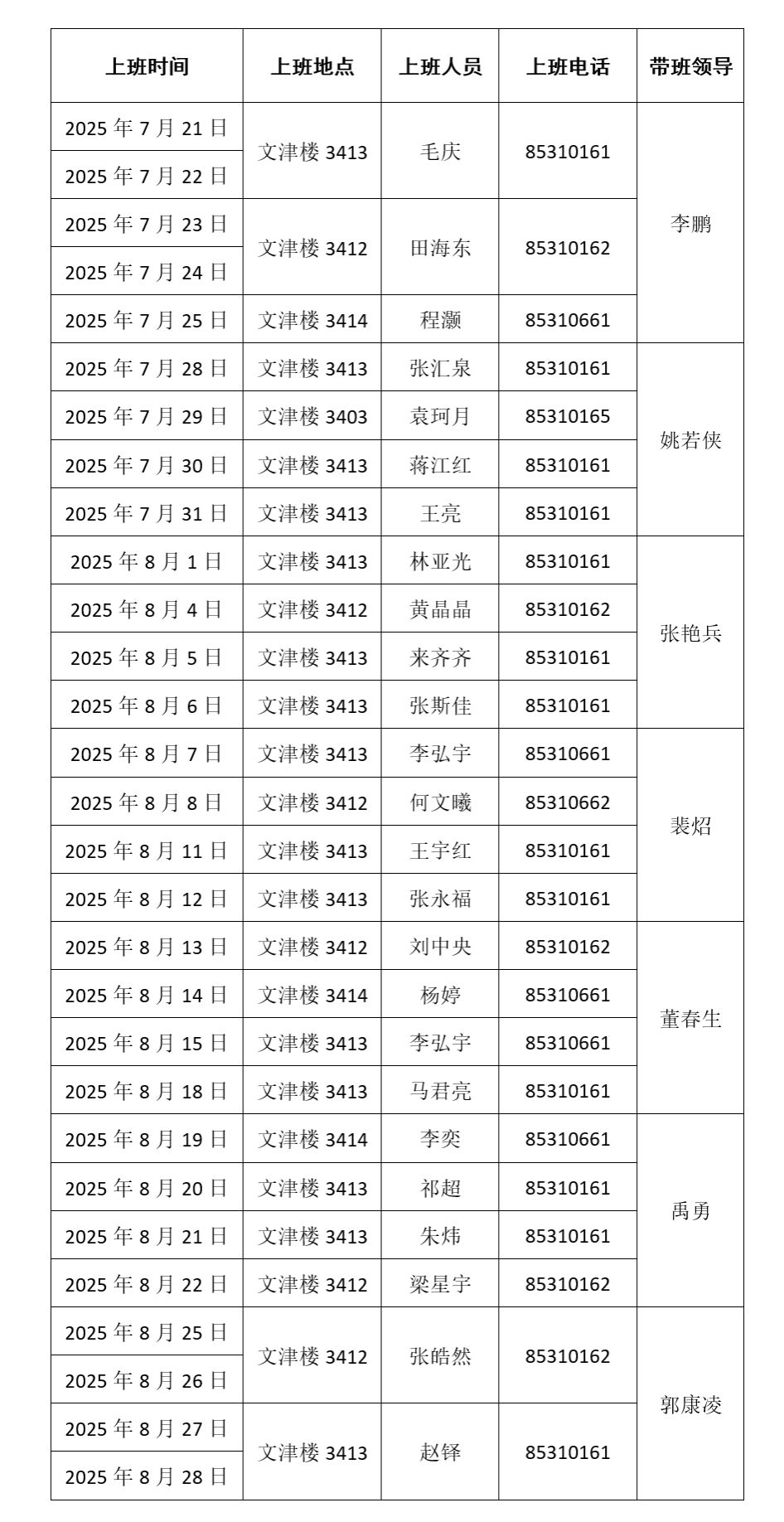 2025年暑期轮流上班安排表