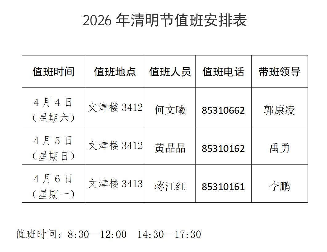 2026年清明节值班安排