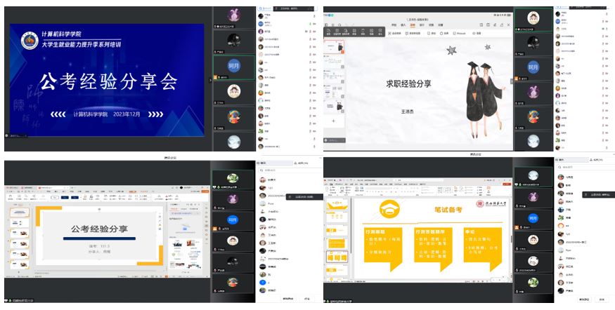 于12月23日晚19:00举办公考经验交流分享会。本次会议采用线上分享的方式,由研究生辅导员袁珂月主持,财神捕鱼