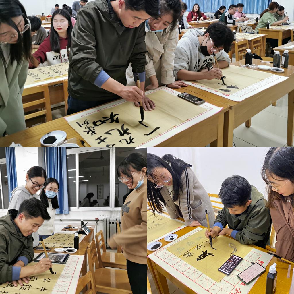 研究生《书法鉴赏与实践》线下课程于文津楼1409教室及1418教室开课。本次书法课程共有七十余名研究生同学参与。