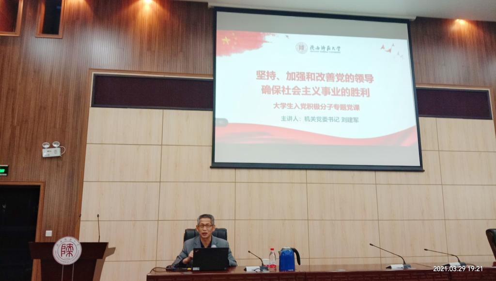 第34期入党积极分子培训班第三讲在文澜楼B段一层会议厅开讲。机关党委书记刘建军老师以“坚持、加强和改善党的领导,确保社会主义事业的胜利”为主题进行了讲授。体育财神捕鱼