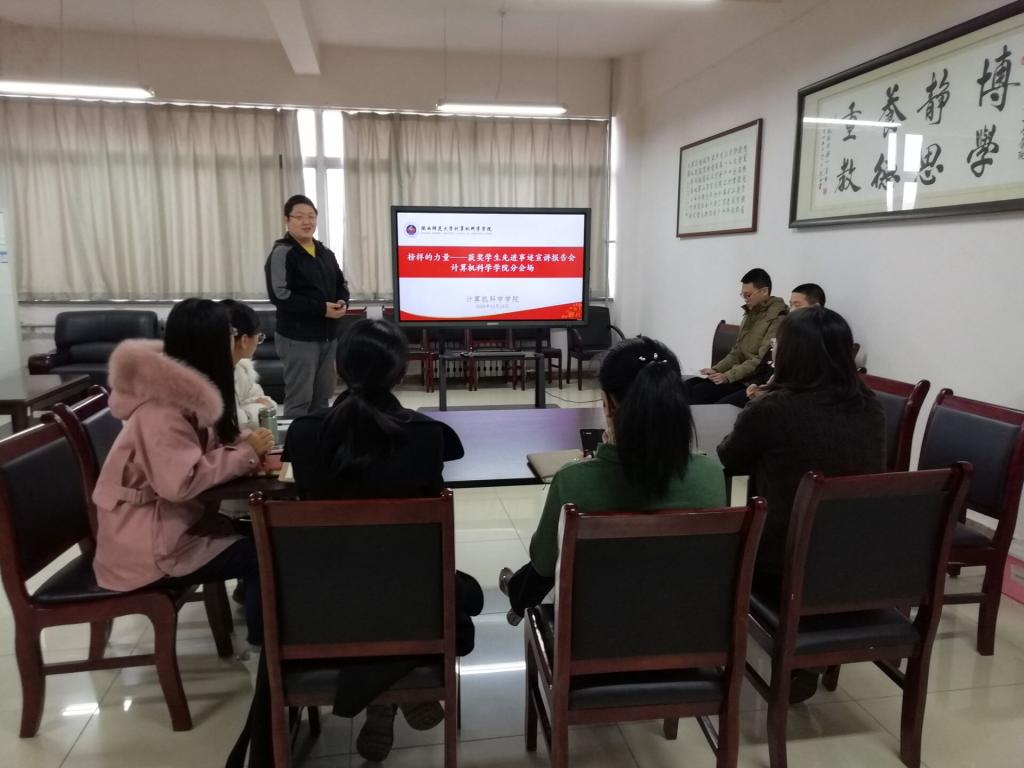 党委副书记袁冰老师总结道,本次获奖学生先进事迹宣讲报告会,通过充分发掘获奖学生身上所体现出的优秀品质,以朋辈的力量激励了计科学子自觉学习典型、努力争做典型,充分发挥了榜样可敬、可亲、可信、可学的优势,在学生之中形成了示范引领作用,推动了优良校风学风的形成。