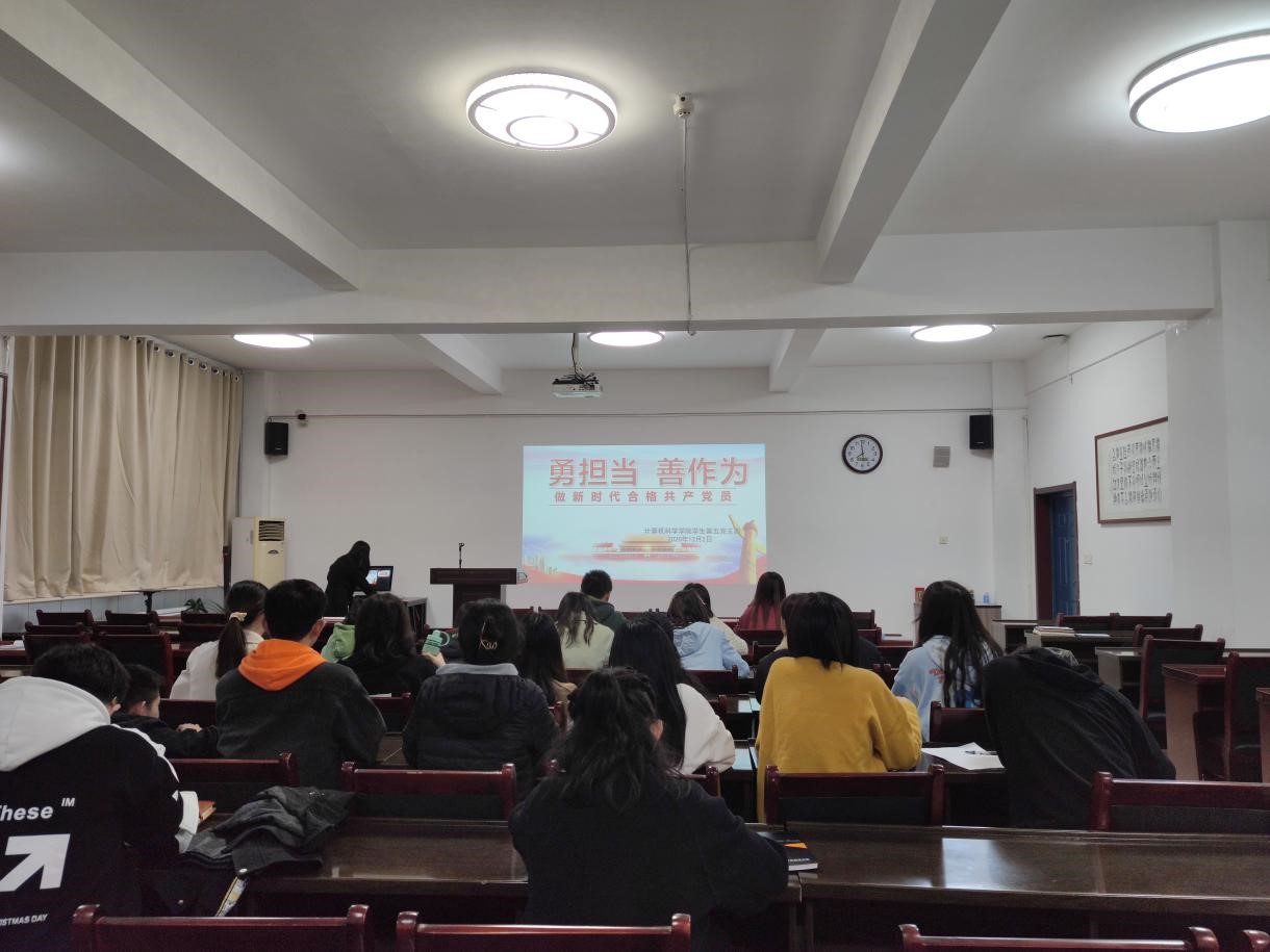 学生第五党支部于12月2日晚在文津楼3412报告厅开展了“勇担当、善作为,做新时代合格共产党员”主题党日活动。本次活动由支部组织委员赵雪玲同志主持,支部全体成员参加。