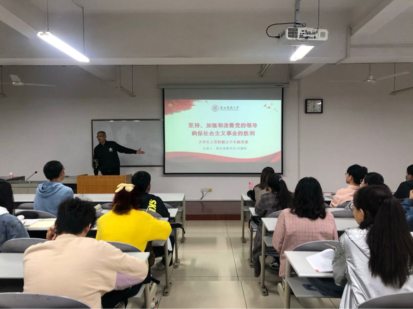第33期入党积极分子培训班第三讲在文津楼3424教室开讲。机关党委书记刘建军老师以“坚持、加强和改善党的领导,确保社会主义事业的胜利”为主题进行了讲授。生命科学财神捕鱼