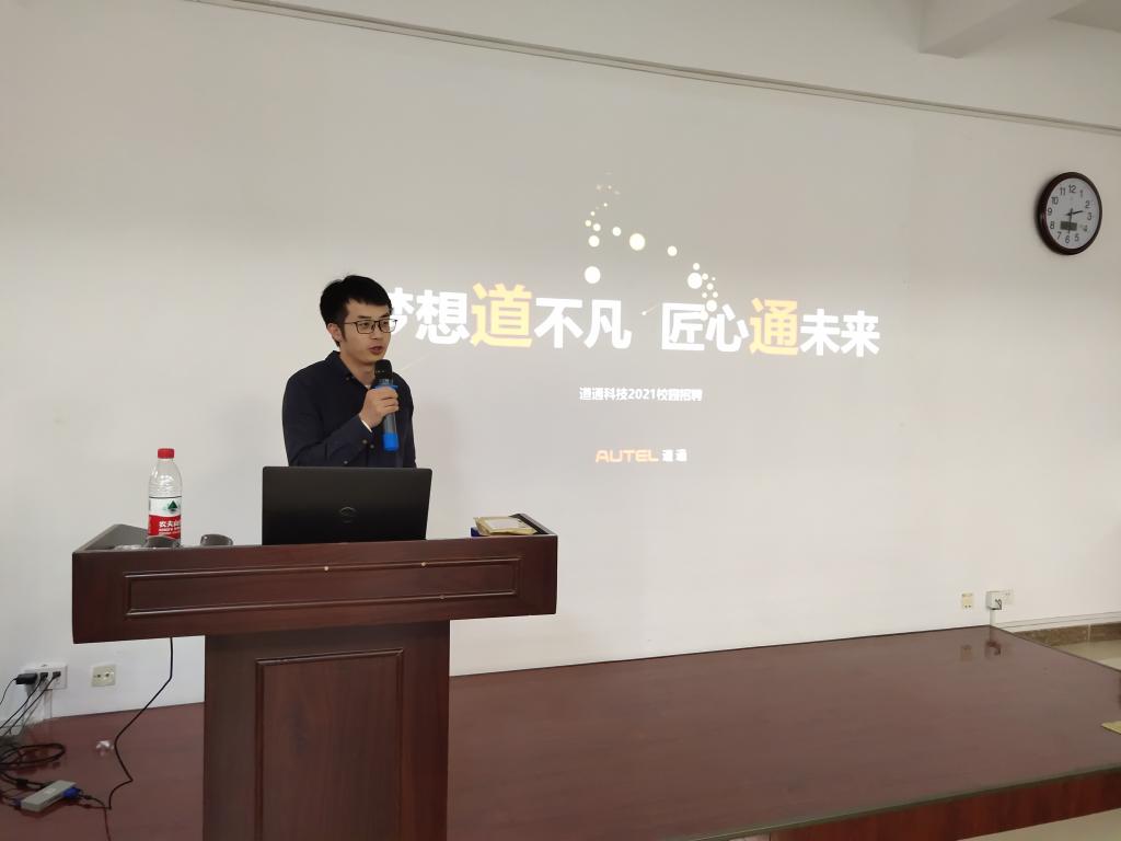 首先,道通科技校招团队向在场的同学们介绍了公司的主要业务、行业地位、财神捕鱼等,着重讲解了同学们关心的个人发展和薪资待遇情况,并就以往入职员工的工作案例进行说明,鼓励大家积极投递简历。随后,招聘专员就2021届校招流程及要求向同学们做了详尽说明,同学们也结合自身情况向道通科技校招团队提出一系列问题,均得到了相应的解答。最后,招聘人员收取了同学们的简历,并确定了面试的地点和时间。