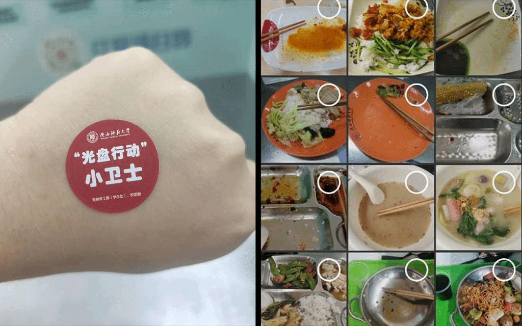 第二,组织实践体验活动,全面持续开展“光盘行动”。 组织学生把节约粮食教育作为节约教育的重中之重,实施光盘行动,并真正落到了实处。在社交媒体上,同学们纷纷用照片记录“光盘”瞬间,坚持光盘打卡,与舌尖上的浪费说“不”,并带动身边的人一起加入这场行动。校后勤处也给予支持:在食堂回收处,同学们争做“学生文明行为督导员”,手持警示牌子,提醒来往的同学们注意节约粮食。不仅加强了学生自我教育和管理的力度,也让节约粮食光荣,浪费粮食可耻的观念深入人心。