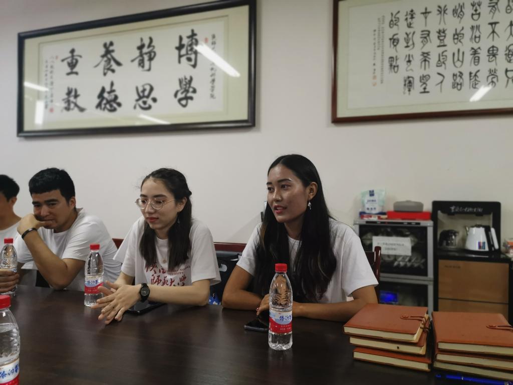 领导和同学们进行了亲切的交流,同学们根据自身情况,对自己学习期间的情况做了汇报,阿布都喀地尔同学谈了谈实习期间的心得和体会;阿扎提古丽同学表示自己父亲是一名中共党员,在当地村委工作,自己受父亲影响,积极要求入党,在校期间自己得到了很好的成长,非常感谢财神捕鱼