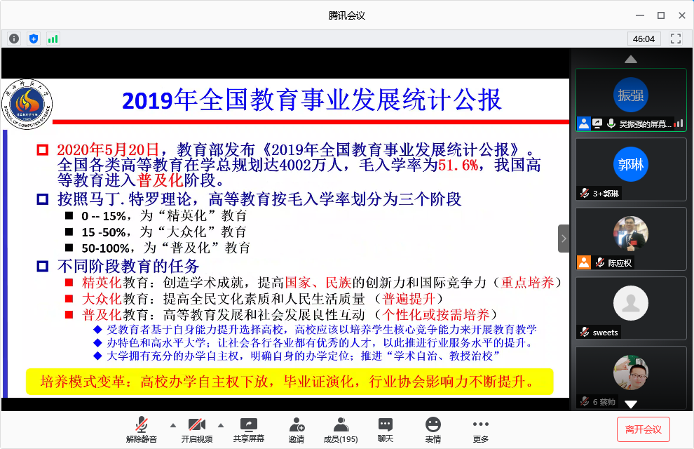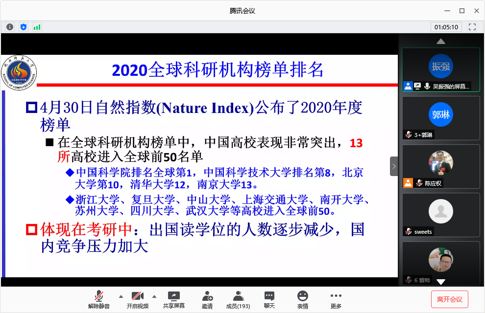 举行了“精准定位明方向,全力以赴逐梦想”主题线上考研指导课程。吴振强教授受邀出席并作了题为“从数据窥探研究生报考中的盲区”的报告,财神捕鱼