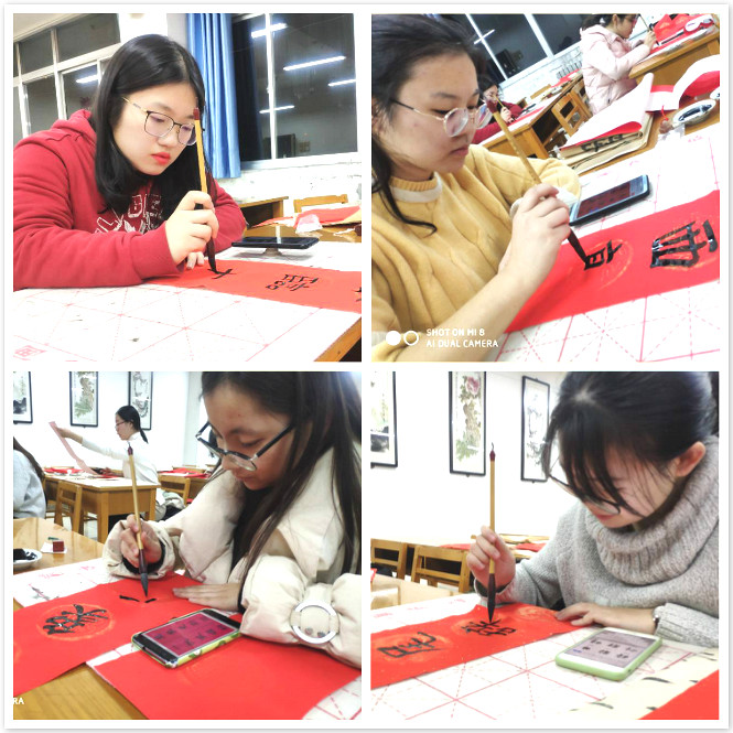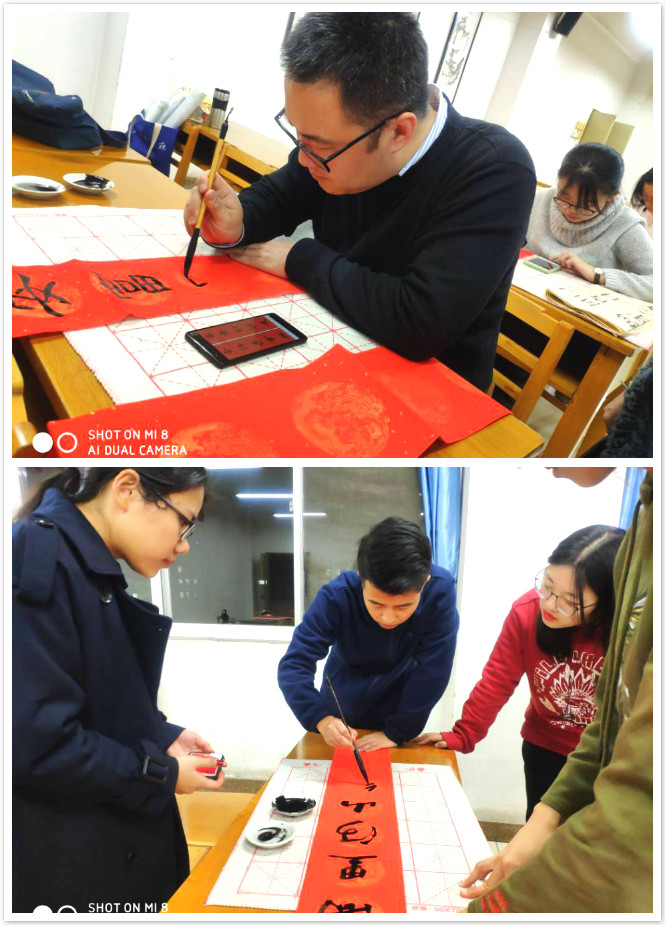 随后,几位老师与所有学员一起书写了对联。对联艺术和书法艺术都是建立在汉民族语言文字特殊性的基础之上,具有民族特色的传统艺术,明清以来,对联的书写已经成为一门独特的书法艺术。将对联与书法结合学习,是本期书法班新的尝试。