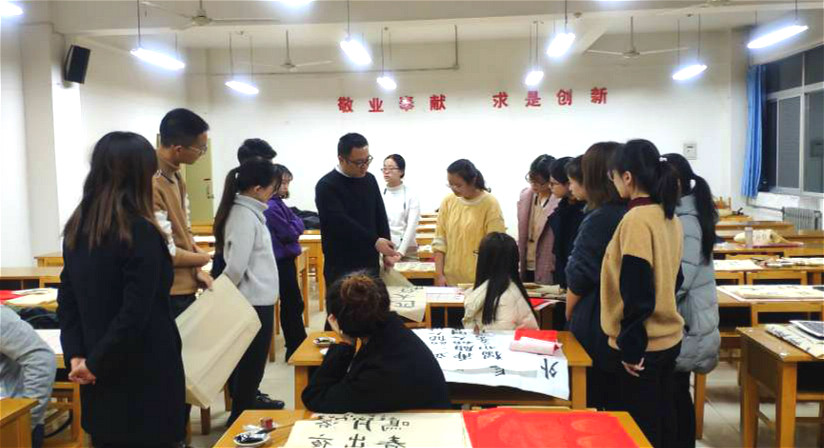 为学生打造了优质的平台,希望各位学员能认真学习,从书法中汲取智慧和营养,知晓、传播、继承和发扬中华优秀传统文化。曹老师提出,经过一学期的学习,每位学员在用笔和章法方面都有了很大的进步,希望今后能继续不断实践练习,体会书法的艺术魅力。
