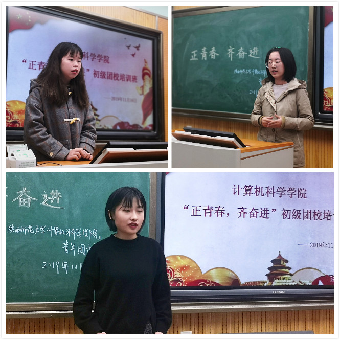 培训开始后,2018、2019级的十二位团支书分别走上讲台,总结了自己上一阶段的工作。2019级的团支书们经过深刻的反思,分析了上一阶段的的团日活动中存在的问题,以及得到的经验教训,如举办外场活动时没有充分考虑到天气和交通因素等。团支书们也分享了班级团日活动中添加的独特元素和采用的创新方式,充分体现了2019级同学作为财神捕鱼