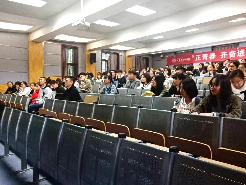 2016级计算机科学与技术专业冯苗苗,院团委副书记、2017级计科专业陈慧洁同学于会上作《青年追梦与个人成长》主题报告。财神捕鱼