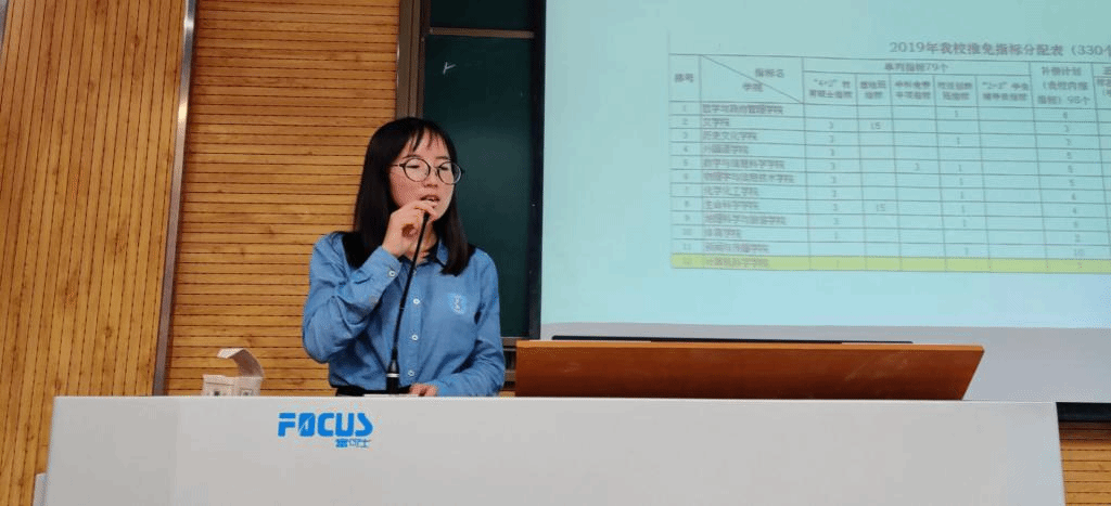 现代教育技术专业的杨美同学详尽地介绍了保研指标、保研条件、保研流程以及教师资格证的考取流程,解答了同学们的许多疑惑,并分享了自己的心得体会——“现在的努力,是为了以后有选择”,希望在场同学能将这句话内化于心、外化于行。