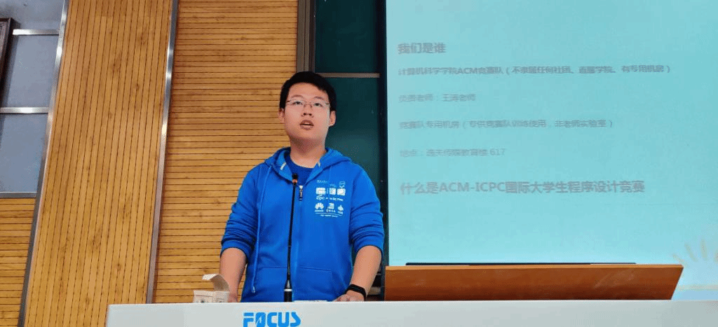 财神捕鱼ACM集训队队长张国正与队员张静妍同学介绍了财神捕鱼ACM竞赛队的比赛经历和获奖情况,同时结合学校的现实情况分析了参赛在专业素质提升方面的作用,使在场同学们对ACM有了一个全面的了解。