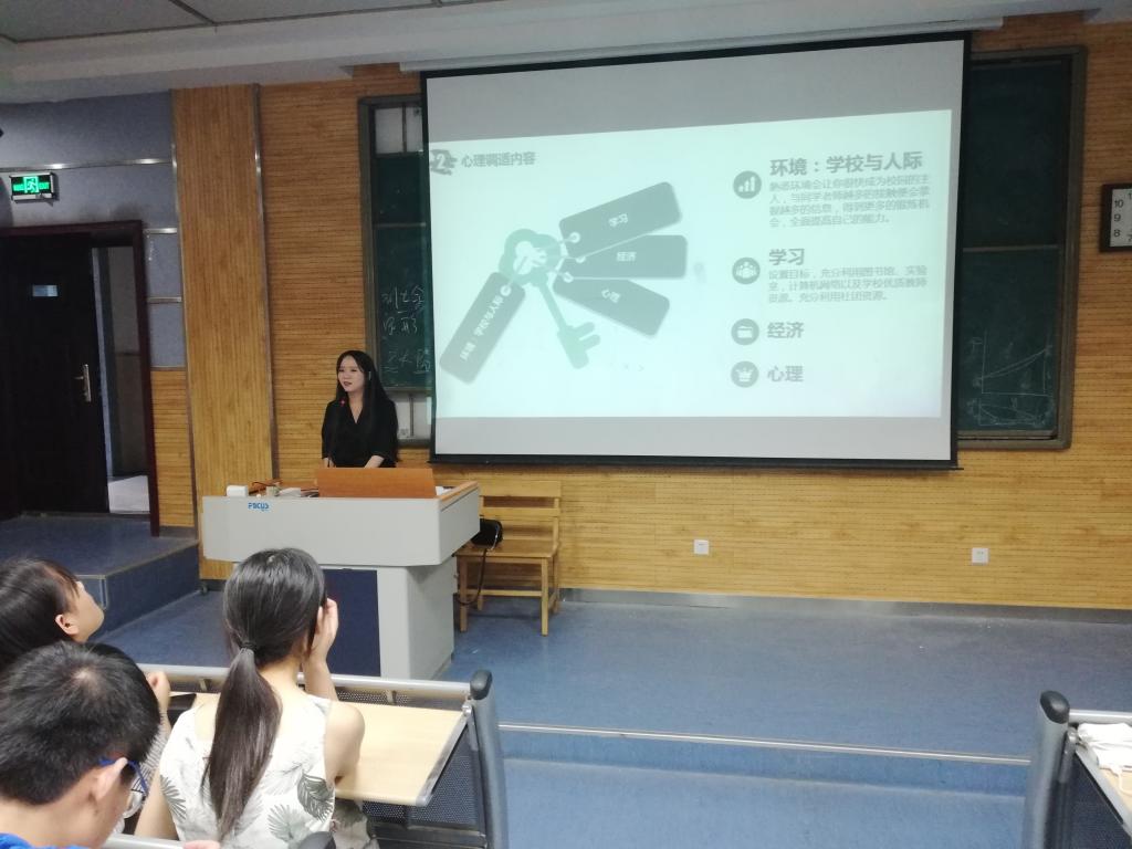 2018级生开展心理健康讲座,讲座由辅导员安琪主持。