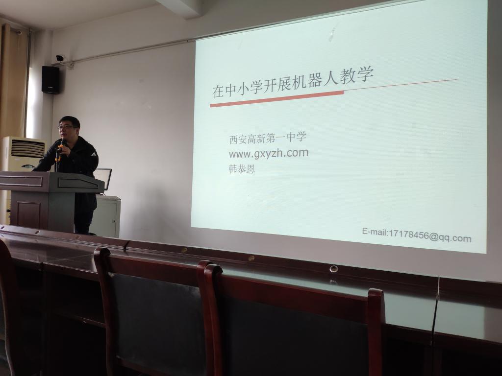 成功举行了主题为“在中小学开展机器人教学”的公费师范生就业指导讲座,主讲人是西安高新第一中学高级教师韩恭恩老师。