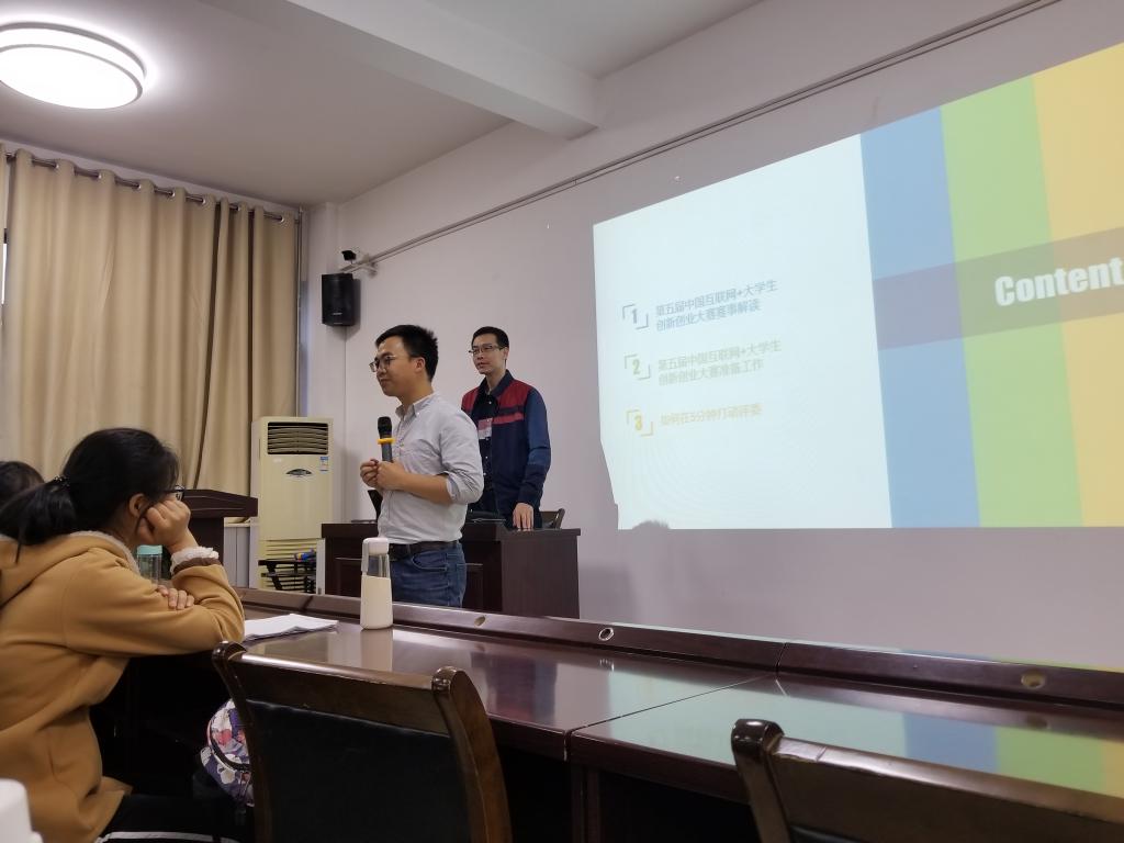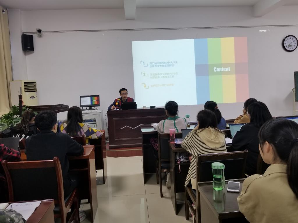 学生做互联网+大学生创新创业大赛赛事解读。解读会由2017级本科生辅导员陈应权主持,财神捕鱼