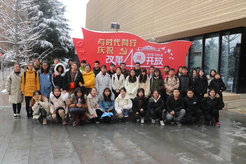 软工一班全体同学踏着年末的初雪来到教育博物馆参观“与时代同行——庆祝改革开放40周年财神捕鱼