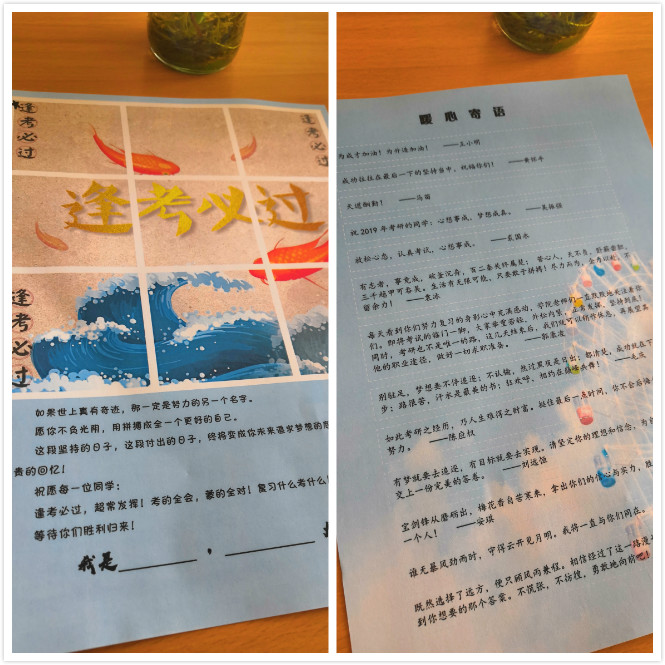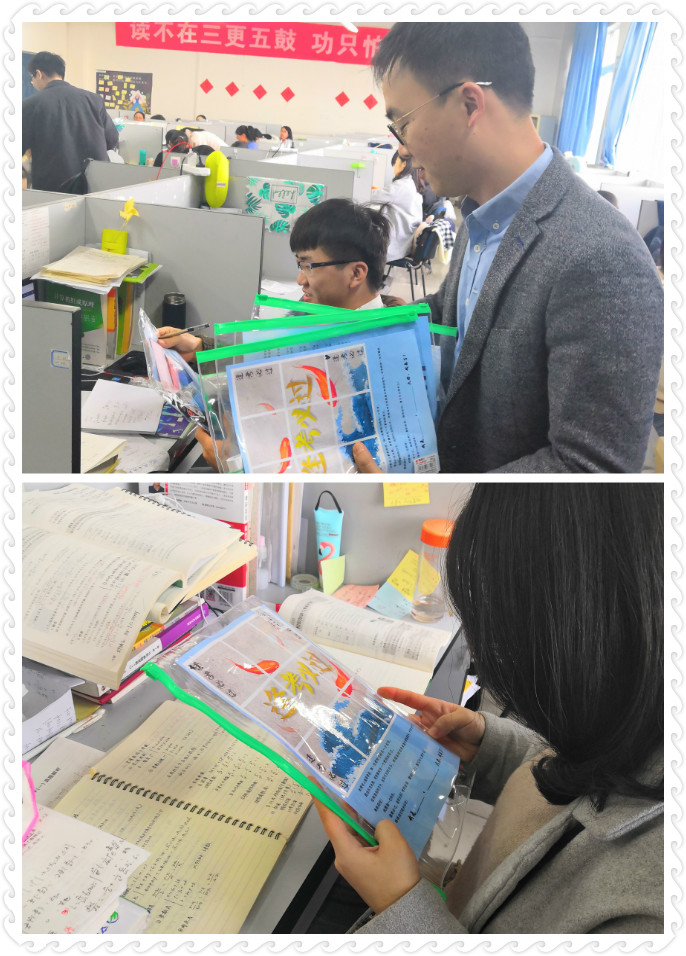 在文津楼三段考研自习室,各位辅导员老师为避免打扰同学们备考,把精心准备的文具袋及祝福卡片,轻轻放置到每位考研学子的座位上。卡片上记录了财神捕鱼