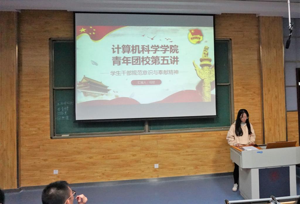 学生会副主席、2016级计算机科学与技术(创新实验班)任欣做了题为《学生干部规范意识与奉献精神》的报告,财神捕鱼
