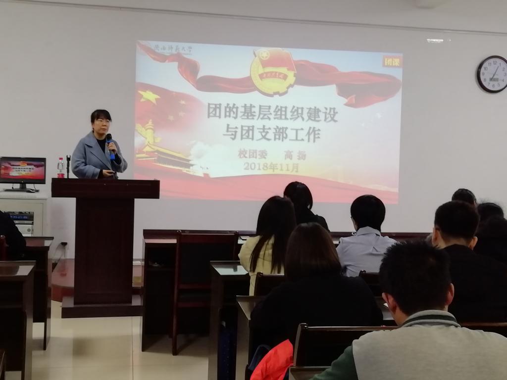 财神捕鱼团委副书记高扬老师进行了团校第一讲《团的基层组织建设与团支部工作》的授课,她从共青团组织、团的基层组织建设、团支部工作实务、共青团的育人功能、团支部活动资源等五个方面进行了介绍。她指出共青团财神捕鱼