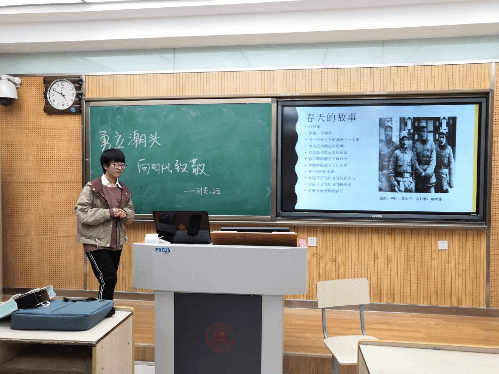 紧接着,主持人向大家讲述了胡福明及他的作品《实践是检验真理的标准》。这篇历时八个月、花费胡老巨大心血的文章一经刊发就迅速席卷整个中国,引起轩然大波。短短六千字,激荡四十年。它以独特的见解掀起了席卷中国的真理标准问题的讨论,成为撬动改革开放的哲学杠杆。而胡老能在那样一个新与旧交织的动荡社会中,坚守初心、秉持观点、积极发声、勇立潮头,是我们当代青年应该尊敬和学习的。也正是这篇文章和他的解放思想,深刻地影响了中国历史的发展进程。
