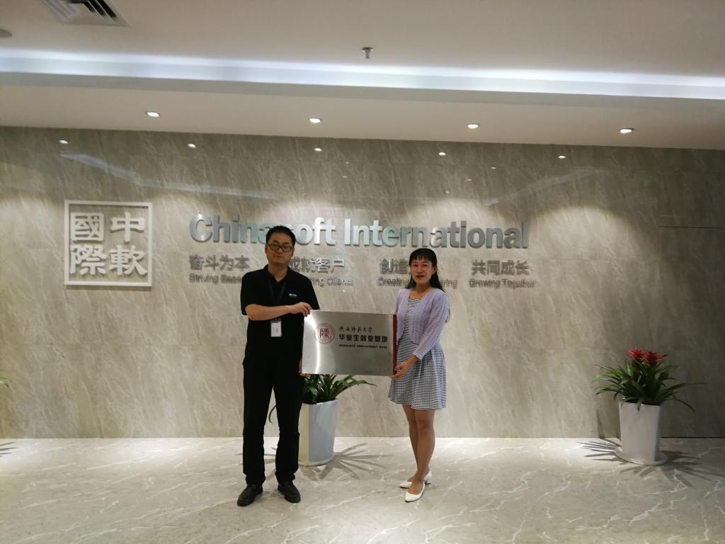 在工作人员的导引下,师生有序地参观了公司的展厅、园厅、工作环境、食宿环境等。通过多媒体设备目睹了一个企业成长发展的过程,了解到目前企业的发展规划,感受了财神捕鱼,对中软国际科技有限公司有了比较深刻的印象。下午3时,举行了财神捕鱼授予中软国际实习基地的授牌仪式,袁冰书记代表财神捕鱼