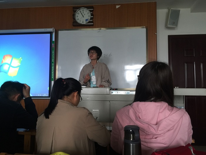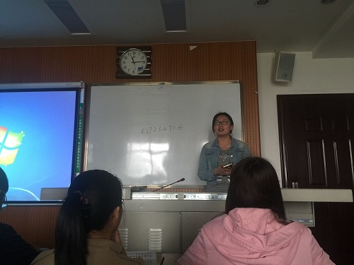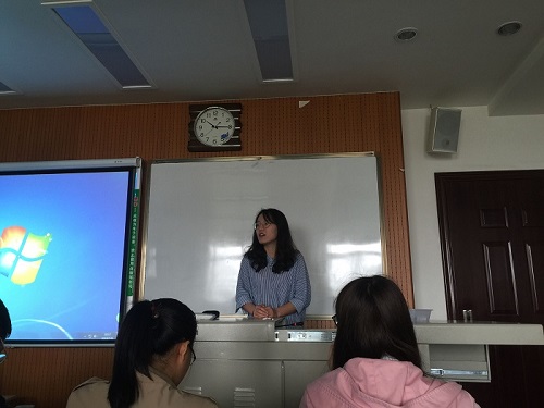 第四位主讲人是2014级计算机科学与技术一班的来自宁夏的柯旭琴同学,签在宁夏西夏区教育局。她主要给同学们讲了宁夏回族自治区对高校毕业生的招聘流程,她建议同学们实习时尽可能地多找机会上台讲课,实习指导老师往往会提供很多帮助。