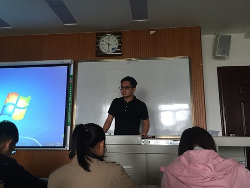第二位主讲人是2014级计算机科学与技术一班的来自贵州的陈海兰同学,已签工作于铜仁民族中学。他主要给同学们介绍了贵州部分地区学校的招聘情况,他提醒同学们最好在招聘会之前就准备几个想去的学校,以免到时候学校太多产生不必要的慌乱。