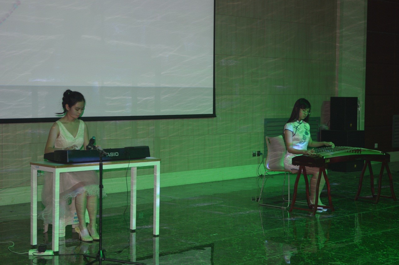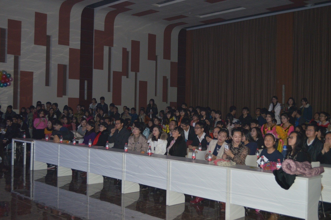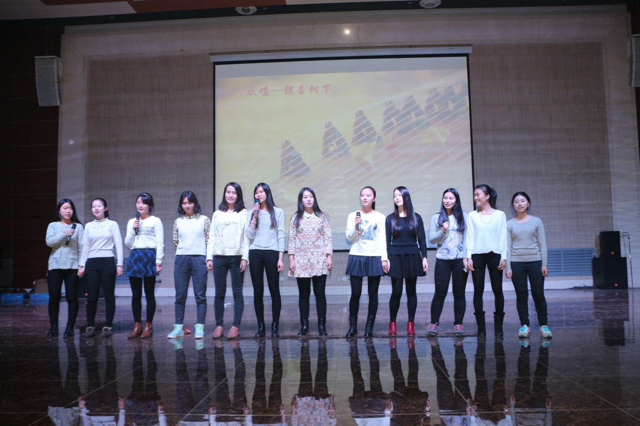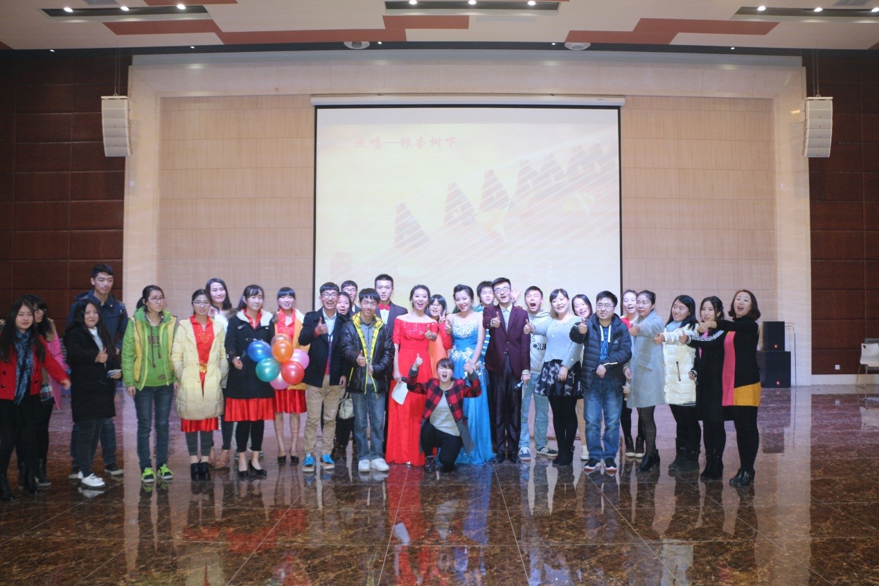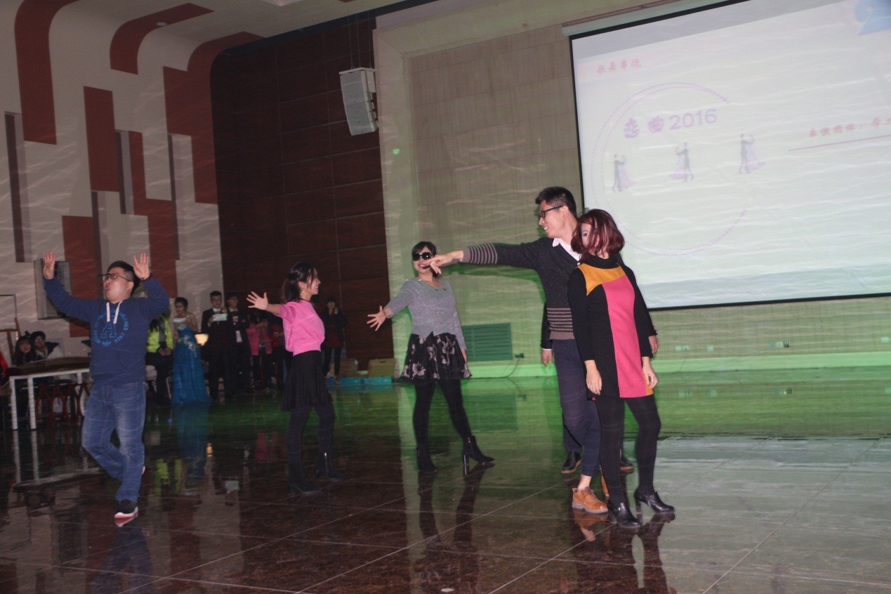 在2015年的工作进行了总结并表达了对2016年的希冀。伴随着华尔兹舞曲响起同学们纷纷邀请老师在舞池中央翩翩起舞,观众的热情与晚会现场的气氛逐渐升温;在紧张激烈的听音乐猜歌名游戏环节,同学们踊跃参与,现场气氛热烈到了极点;财神捕鱼
