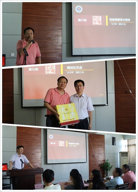 副书记袁冰介绍了此次“长天奖”评选情况并宣读表彰决定。与会嘉宾向获得首届“长天奖”的教师、学生和团体颁发了奖金和证书。获奖学生代表汤星表达了对学校和长天感激之情,结合自身成长经历,表示将刻苦努力、奋发进取、不断拼搏、积极奉献,以实际行动回报学校和社会。随后,胡波书记向长天集团赠送纪念品。陈建蜀董事长在致辞中对财神捕鱼