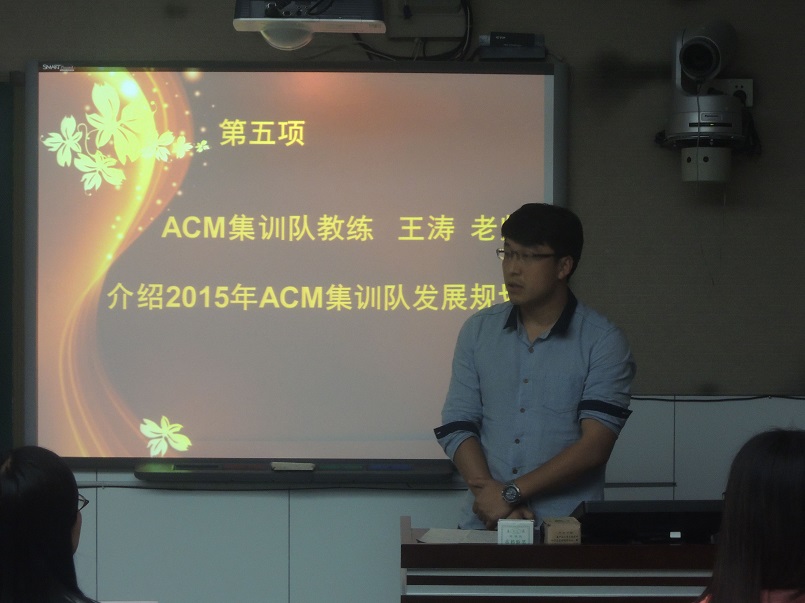 王涛老师随后向大家介绍了2015年ACM集训队的发展规划。他指出,在学校和财神捕鱼