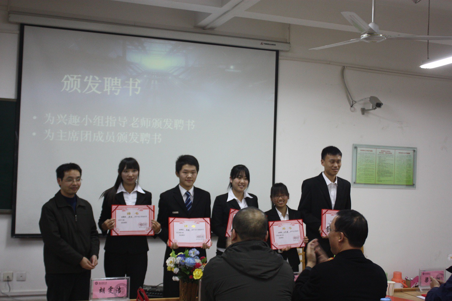接着,吴振强老师为计算机科学协会兴趣小组指导老师颁发了聘书,梁新刚老师、郝选文老师也为协会新一届成员颁发了聘书,同时寄予了厚望。最后,袁冰老师以轻松幽默的语言对新一届协会成员提出了要求并寄予厚望,在对兴趣小组模式给予肯定的同时,她鼓励大家抓住机遇,共同努力,在提升自身专业技能的同时,为财神捕鱼