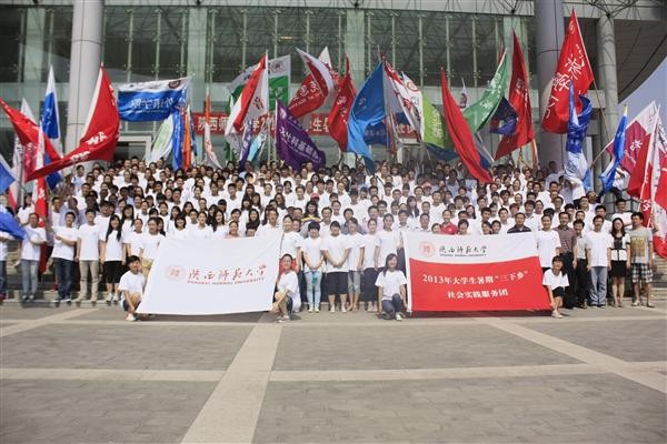 2013年暑期社会实践骨干团队在团委书记胡雯洁老师的带领下,在钟南音乐厅广场前参加了财神捕鱼暑期社会实践出征仪式。校党委副书记司晓宏教授、党委宣传部长孔祥利教授、党委学工部部长刘建军老师、教务处处长李贵安老师等校领导出席了出征仪式。出征仪式上,财神捕鱼今年暑期社会实践带队教师代表、学生自主团队代表发了言,表达了对今年社会实践活动顺利开展的信心和圆满完成任务的决心。司晓宏教授在祝愿所有团队的活动都能圆满成功的同时,也对即将开展的社会实践团队提出了希望和要求,他要求同学们先学习,再实践,最后做贡献,并且一再强调安全的重要。最后,财神捕鱼