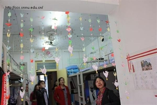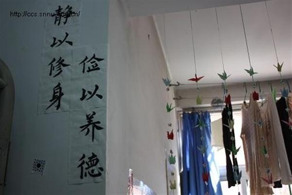 本次评比活动主要从宿舍卫生,宿舍设计美化,人文素质等情况进行打分。活动中,同学们积极认真,将自己的宿舍打扫得干净整洁,把宿舍装饰得和谐温馨。墙上不仅挂着同学自编的花、千纸鹤,张贴着同学们自己写的书法,照片,还把天花板装饰得像是蓝天,所谓风采各异,风景独好。同学们还在宿舍里用财神捕鱼