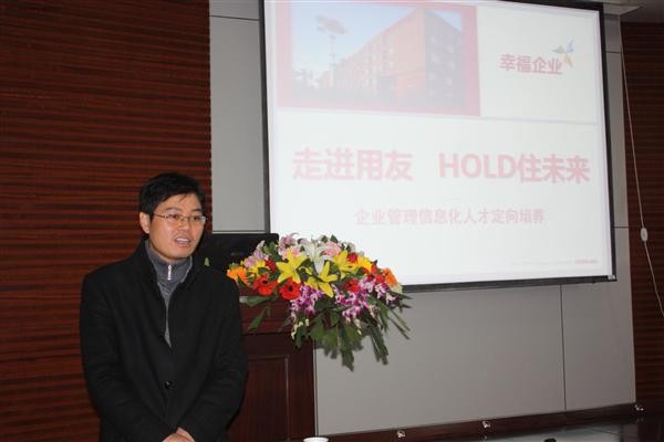 首先,马院长对用友公司做了简要的介绍,并且播放了宣传片。用友软件股份有限公司成立于1988年,是亚太本土最大的管理软件、ERP软件、集团管理软件、人力资源管理软件、客户关系管理软件、小型企业管理软件、财政及行政事业单位管理软件、汽车行业管理软件、烟草行业管理软件、内部审计软件及服务提供商,中国500强企业超过60%使用用友软件。