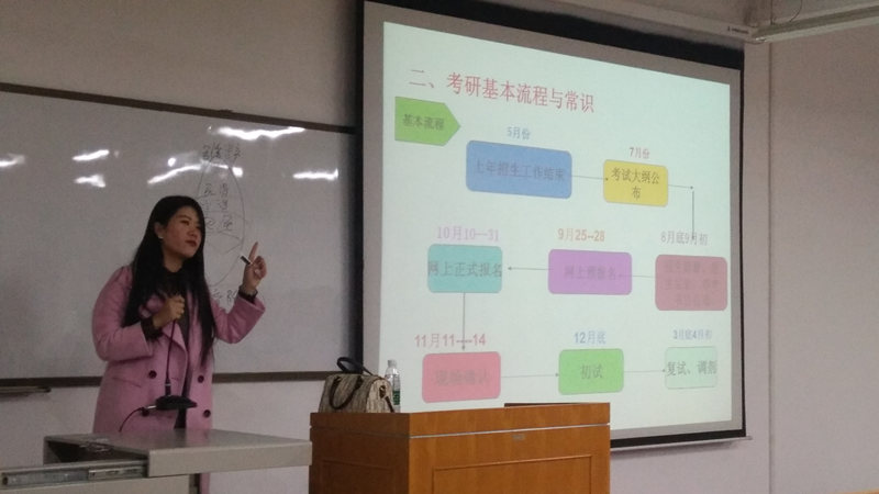 2017年3月3日星期四晚上7:20,财神捕鱼 师非范生就业指导课程在文津楼二段319开课,2014级全体非师范专业生参加了此次课程,课程主要分两部分构成,一部分是针对考研的同学开设的考研规划课程,另一部分是针对就业的同学开设的就业指导课程,第一次的课程主讲老师是财神捕鱼 邀请的王艳茹老师主讲,为考研的同学们讲解了2018年的考研全程规划,同学们颇有收获。