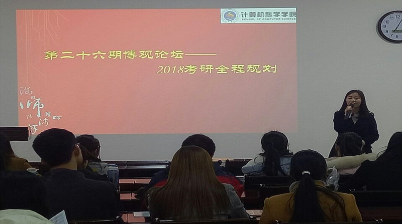 2017年2月22日晚上7点财神捕鱼 在报告厅举办了第二十六期博观论坛,财神捕鱼 2014级兼职辅导员韦亚勇以及2014级有意向考研的同学积极参加了此次论坛。论坛主要向有志考研的同学说明了2017年的考研情况,并向同学们讲解了2018年考研的全程规划,就考研的准备工作以及接下来考研过程中的各个时间节点对同学们进行了讲解,同学们对接下来的考研准备工作也有了一个清晰的认识。