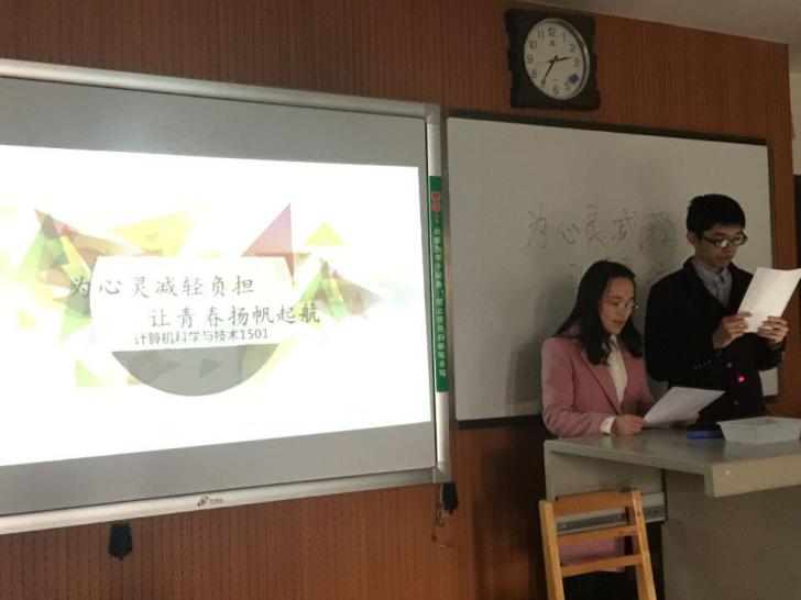 计科1501班在文津楼517教室举行了以“为心灵减轻负担,让青春扬帆起航”为主题的心理班会。