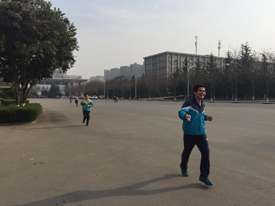 胡曦明老师、郝选文老师和同学们一起,按照指定线路在校园中奔跑,散发着青春的活力。学生会各部门人员在烈日下四处布置场地和调配人员,运动会的气氛也随着温度的升高而慢慢的点燃。