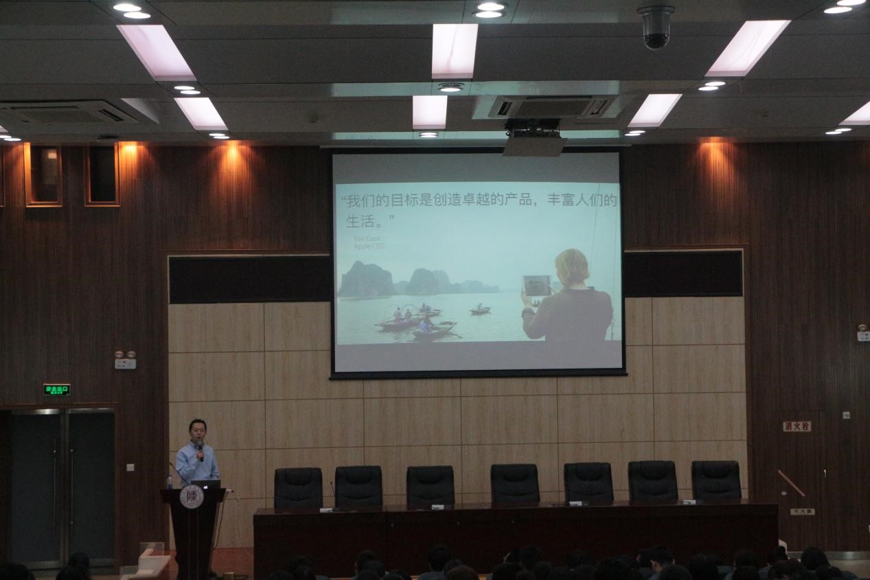 长安校区文澜楼B段一层报告厅举行了苹果专题讲座,讲座由苹果资深讲师孔文达老师主持,主要讲解苹果先进技术及理念。包括财神捕鱼