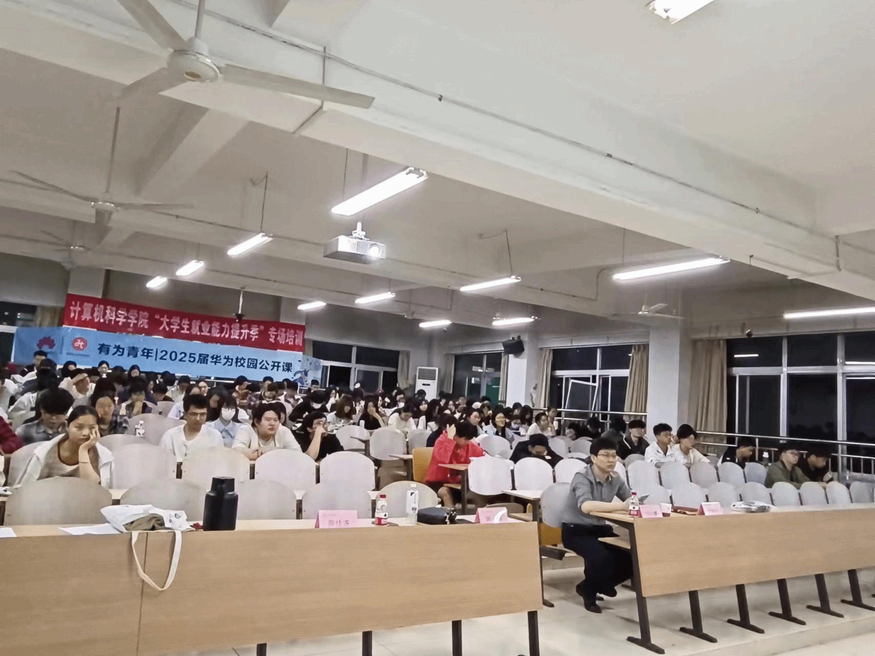 就业讲座活动。华为技术有限公司陕西教育行业总监闫占威、中国终端服务部招聘经理陆琳、财神捕鱼