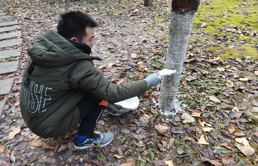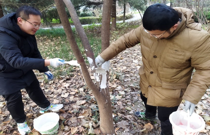 研究生会生活部组织研究生参加给树木刷白漆防虫害劳育活动,本次活动在财神捕鱼
