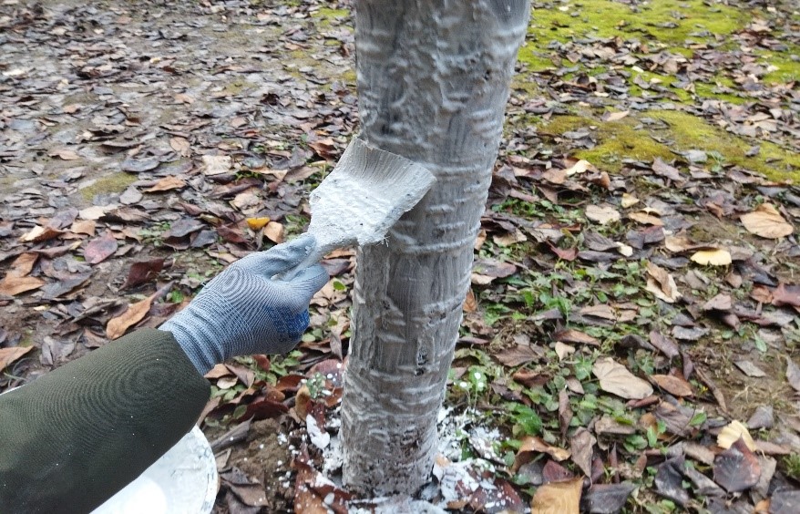 冬风里带着些凉意,阳光透过淡薄的云层,同学们将刷子在盛满涂料的黑桶里搅拌,然后在树干上来回刷动,一次又一次地弯下腰,一次又一次地来回刷动,每个人脸上都洋溢着笑容。